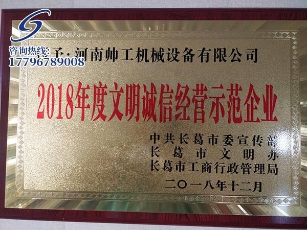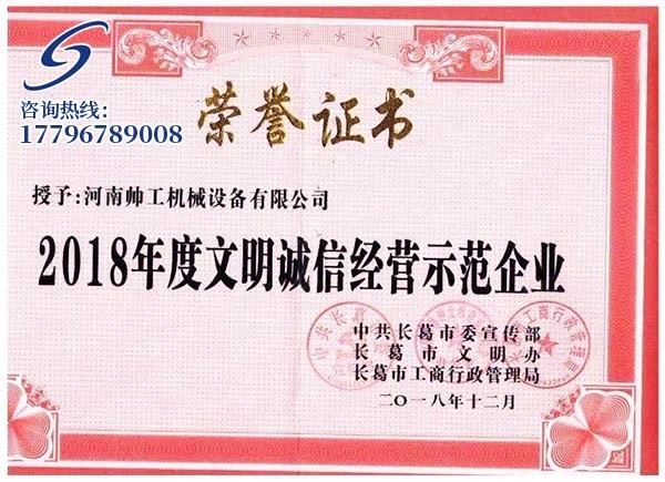 2018年度文明诚信经营示范企业证书